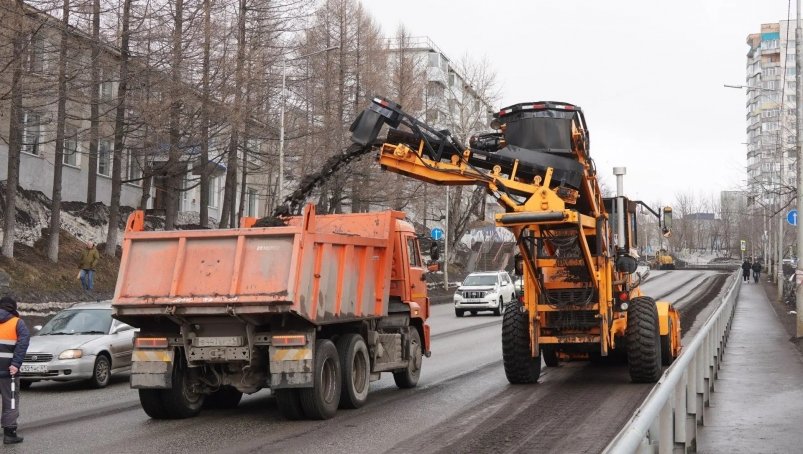 Погрузчик "LeeBoy 3000" подключили к уборке песка с дорог Петропавловска‑Камчатского